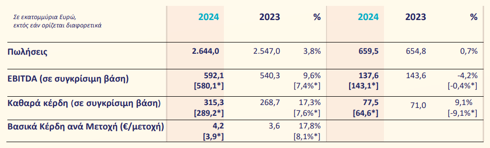 Οι πωλήσεις του Ομίλου αυξήθηκαν κατά 3,8% σε €2.644 εκ. καταγράφοντας άνοδο για τέταρτο συνεχόμενο έτος, με αυξημένους όγκους σε όλα τα προϊόντα και σταθερές τιμές. Τα περιθώρια κερδοφορίας EBITDA αυξήθηκαν κατά 120 μονάδες βάσης (σε συγκρίσιμη βάση). Όλοι οι γεωγραφικοί τομείς κατέγραψαν αυξημένες πωλήσεις, με τις ΗΠΑ και την Ευρώπη, να ξεπερνούν το 90% των συνολικών πωλήσεων του Ομίλου.